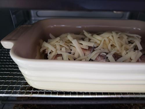 250℃のオーブントースターで15分程度焼く。焼き目をしっかりつけて、香ばしさをだそう。