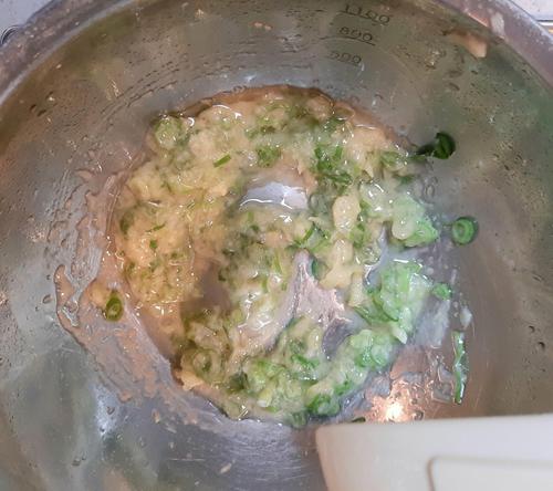 おろししょうが、うま味調味料、白胡椒、塩をボウルに入れる。熱したサラダ油を混ぜながら入れる。