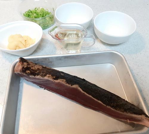 Step.1 鰹のたたきをカットする