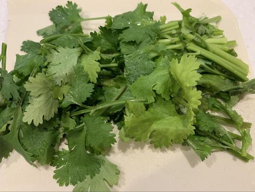 パクチーは土が付いていることがあるので、しっかり水で洗い流す。