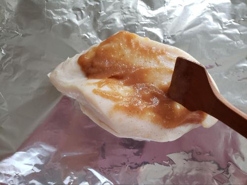Step.1 サラダチキンに梅肉を塗る