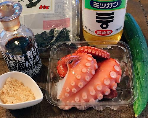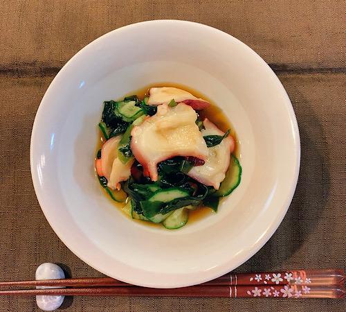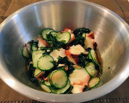 三杯酢にタコ、キュウリ、ワカメを入れて、混ぜ合わせたら完成となる。