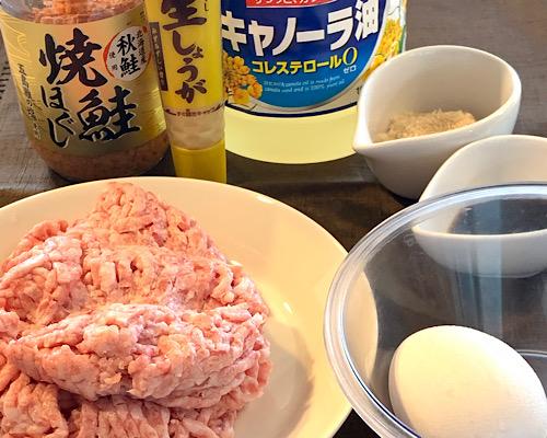 フライパンにおろししょうがを入れて加熱し、香りが出てきたら豚ひき肉を入れて炒める。砂糖と醤油を加えて味を馴染ませる。