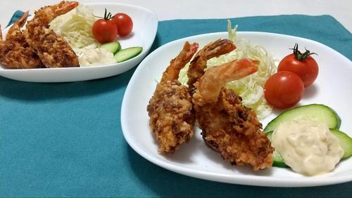 【ザクザク衣のエビフライ】流行りの大豆たんぱくとフライドオニオンで