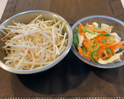 もやしはシャキシャキ食感を残すため、最後にサッと火を通す程度にしたい。事前に、もやしとほかの野菜類とを分けておくとよいだろう。