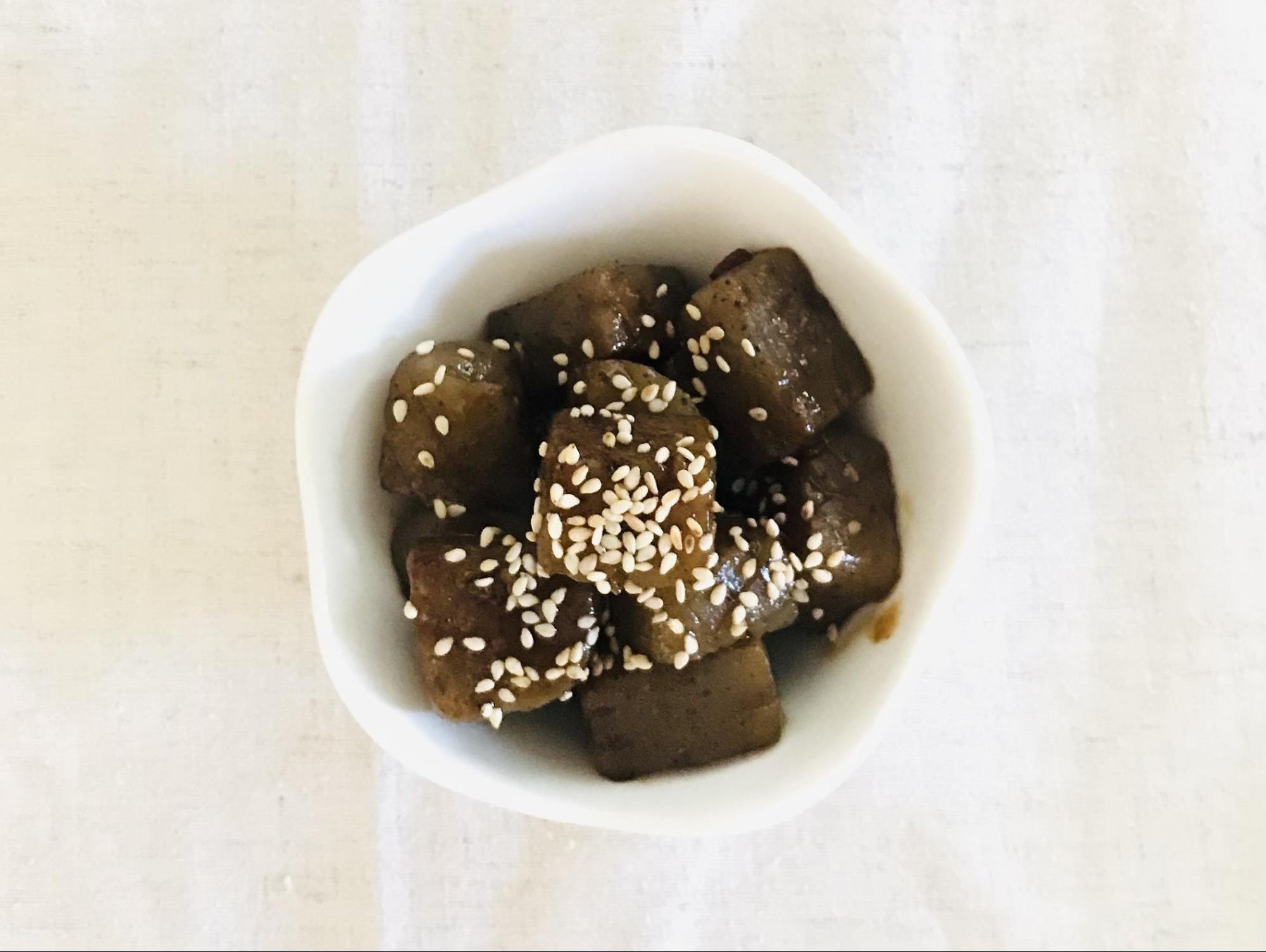 全体に焼き色がついたら、焼肉のタレをしっかりと絡ませる。仕上げに白ごまをふり、完成。