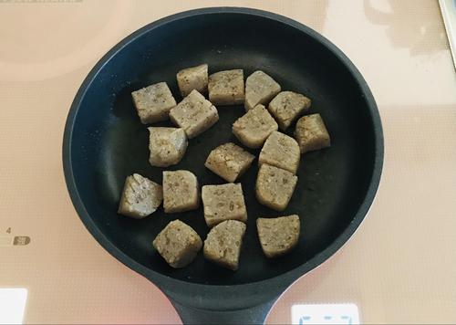 こんにゃくと輪切り唐辛子を入れ、表面に薄く焼き色がつくまで焼く。