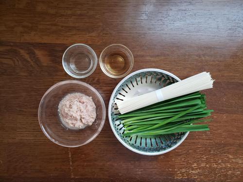 にらは根元を落とし、食べやすい大きさに切り分けておく。