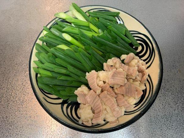 シマチョウ(牛の大腸)は、汚れた部分を水でよく洗ってから熱湯で10分程度茹でる。