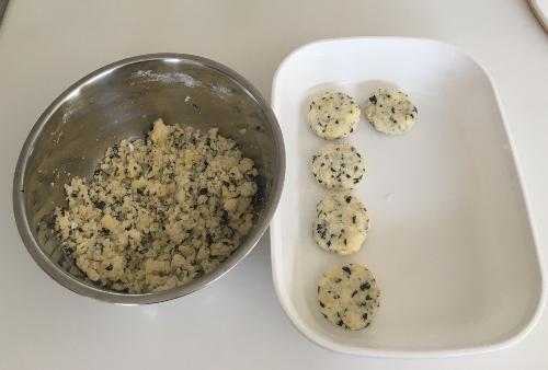 食べやすい大きさに形を作る。厚みがあるとモチっと仕上がり、薄めにすると表面がカリっと焼きあがるので、好みで形を整えるとよいだろう。