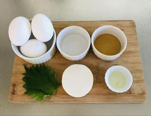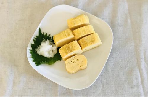 粗熱が取れたらお好みの大きさに切り、皿に盛る。大根はおろして、大葉とともに添える。食べる前に、お好みでしょうゆをかける。