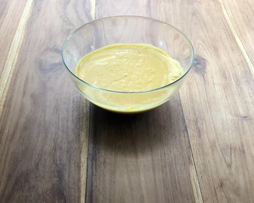 かぼちゃを電子レンジから取り出し、爪楊枝がスッと刺さることを確認する。十分に柔らかくなったら、熱いうちにコンソメを加えて全体をひと混ぜする。牛乳を加え、ハンディブレンダーやミキサーなどで滑らかになるまで攪拌する。