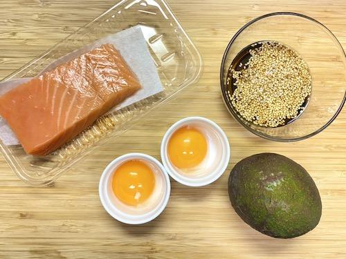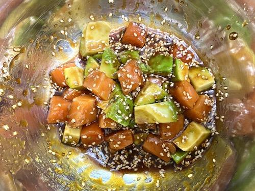 アボカドとサーモンにタレを加え、全体によく絡める。