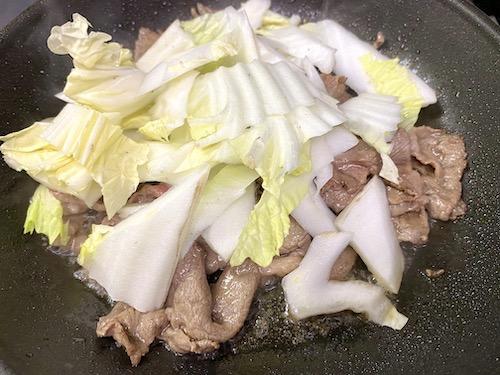 Step.2 牛肉と白菜を炒める