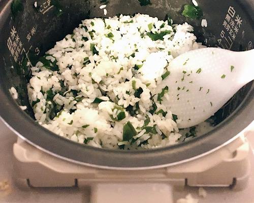 ごはんが炊けたら、わかめ、和風出汁の素、塩を加えて、切るように混ぜ合わせたら完成となる。ぜひ、炊き立てのうちに味わってみてもらいたい。
