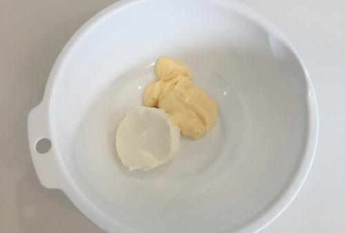 室温に戻したクリームチーズとマヨネーズ、レモン汁をよく混ぜる。