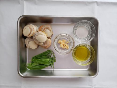 【さやえんどうとホタテのペペロンチーノ風】旨みたっぷり感じる一品!