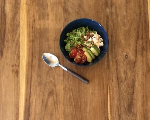ボウルにオートミール、ささみ、トマト、アボカド、サニーレタスを盛り付けて、ドレッシングをかけていただく。