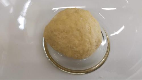 生地がつるっとするまで10分程度捏ねる。最初はべたつくかな?と思うが、大丈夫。量が少ないのでさほど力はいらないが、台に叩きつけたり伸ばしたり丸めたりしてみよう。