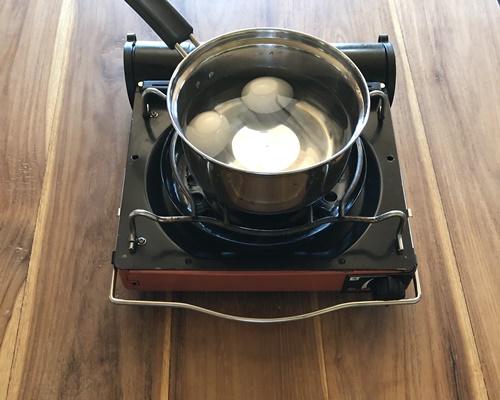 鍋に卵と、卵がかぶるくらいの水を入れて中火にかける。沸騰してから8分程度加熱する。火からおろしたら流水で冷やし、殻をむく。縦に4等分にカットする。