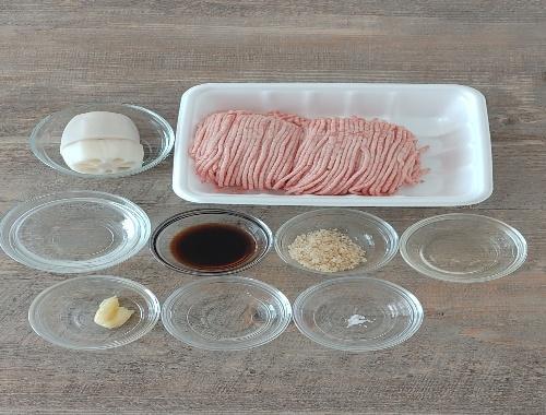 Step.1 ひき肉をこねる。レンコンをカットする。