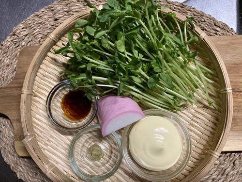 ボウルにかまぼこと豆苗を加えてまんべんなく和える。