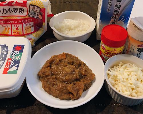 ごはんとホワイトソースを混ぜ合わせて、耐熱容器に入れる。