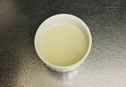 容器に粉ゼラチンと水を入れ、600Wの電子レンジで20秒加熱する。きちんとゼラチンが溶けていることを確認する。