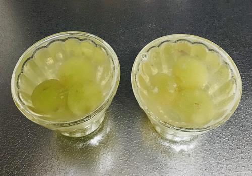 容器にぶどうを入れ、液を流して冷蔵庫で2時間以上固める。