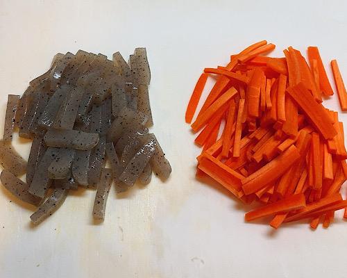 Step.1 こんにゃくとにんじんをカット