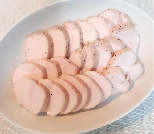 Step.4 沸いたお湯に鶏むね肉を入れて、冷めるまで放置する。