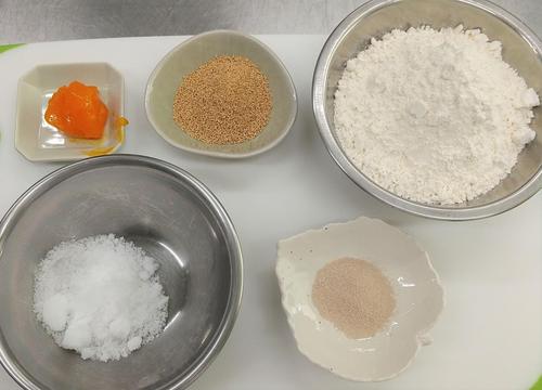 卵黄とホットケーキミックスをよくなじませ、砂糖とイーストと湯を混ぜたものを入れてよく合わせる。そこに粉末味噌を加える。味噌は塩分が高いので最後に入れるのがポイントだ。