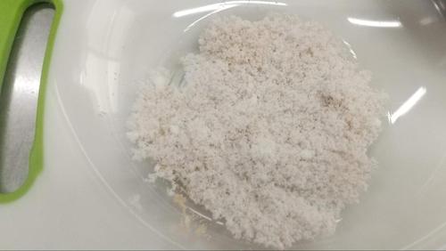 最初に砂糖とイーストを混ぜて、ぬるま湯65gを加え、よくなじませる。ぬるま湯は40℃程度で、お風呂くらいの温度が目安だ。
