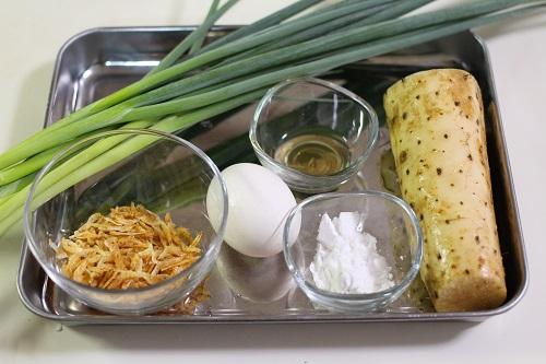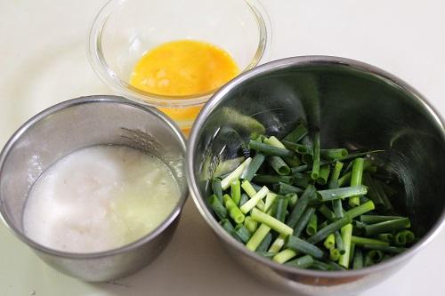 青ネギは根元を落として2?3cm幅に切り、長芋は皮をむいてすりおろす。卵は割りほぐしておく。