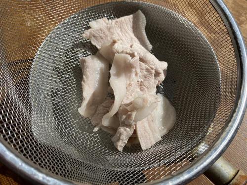 豚肉は食べやすい大きさに切り、茹でて水気をきっておく。
