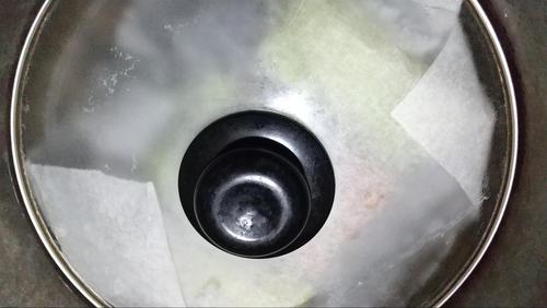 上からクッキングシートをかけてから蓋をする。蒸し焼き状態にしたいので、しっかり蓋が閉まる鍋を選ぶこと。弱?中火で15分火にかけたら完成だ。
