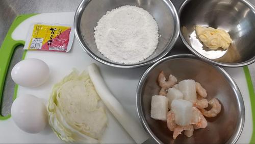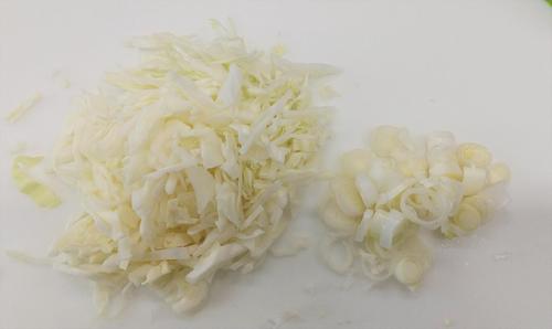葱とキャベツは根元を除き、細かめのざく切りにする。シーフードミックスは解凍しておく。