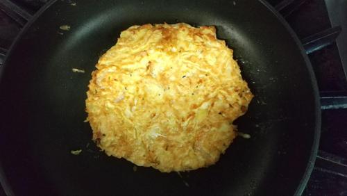 油(分量外)をごく少量ひいたフライパンに、生地を流し入れて焼く。最初は中火で、途中蓋をしてじっくり片面5分程度ずつ焼く。失敗したくない場合は、温度が一定になるホットプレートを使うのがおすすめだ。フライパンの場合、気持ち弱めの火で焦らずじっくり焼くと失敗しない。