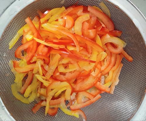 Step.2 スライスしたパプリカを水さらす