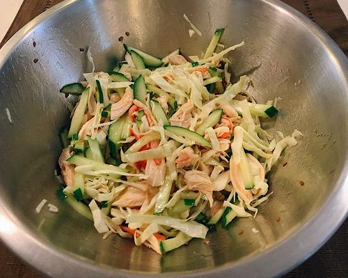 ボウルにささみを加えて、ドレッシングを入れて味を調えたら完成となる。