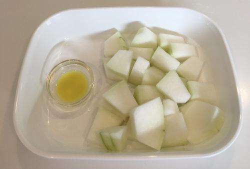 Step.1 冬瓜を食べやすい大きさに切る。しょうがはすりおろして絞る
