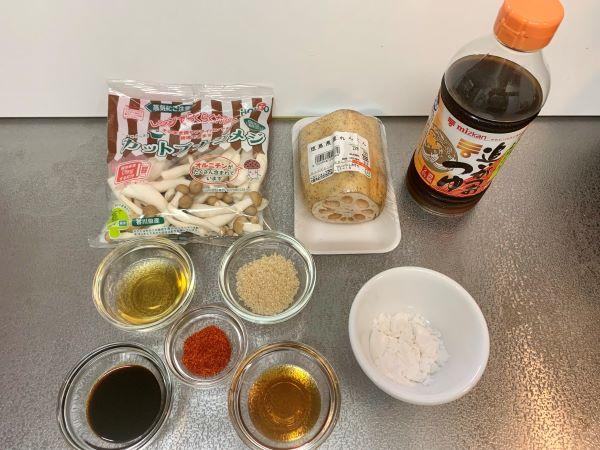 れんこんは1cm角×4cmに揃えて切り、酢(分量外)少々を入れた水に5分程度漬けておく。