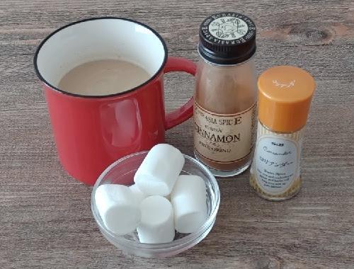 最後に、コリアンダーとシナモンを好みで振り入れ完成。冷めるとマシュマロが固まってくるので、温かいうちに美味しく頂こう!