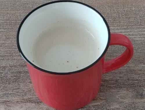 電子レンジ加熱対応のマグカップに、カフェオレを用意する。この後加熱するので、ぬるくても問題ない。カフェオレが冷たい場合は、電子レンジで1分程加熱しておく。マシュマロの甘さを考慮して、無糖のカフェオレをおすすめする。