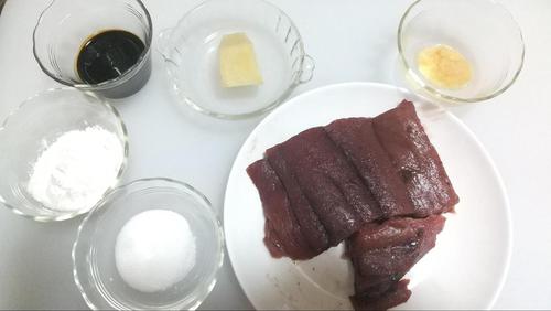 調味料を全部ボウルに入れてよく混ぜる。ボウルにラップをかけて冷蔵庫で15分以上漬けこむ。漬けこみが終わったら、片栗粉と小麦粉を混ぜたボウルにマグロを入れて、粉をまぶす。
