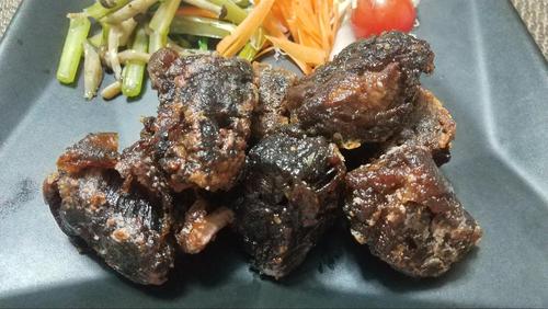 170℃に熱した油で5分程度じっくり揚げる。揚げはじめは、温度が一定になるように菜箸で油をかき混ぜるとよい。揚げ終わったらバットにとり、皿に盛り付けて完成。好みで野菜を添えていただこう。