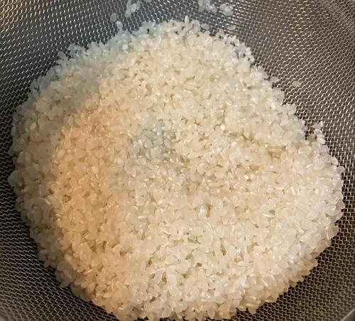 お米をザルとボウルで洗う。お米を潰さないように、数回水を替えて白く濁らなくなるまで水で洗う。