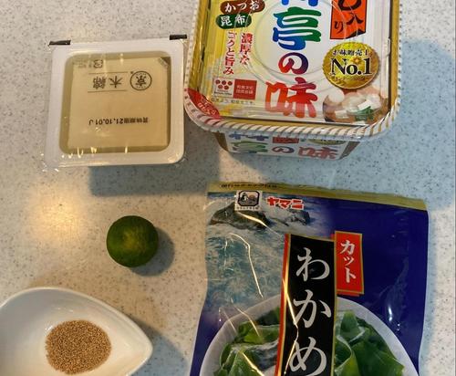 味噌を入れたら、一口サイズにカットした豆腐とカットわかめを入れる。