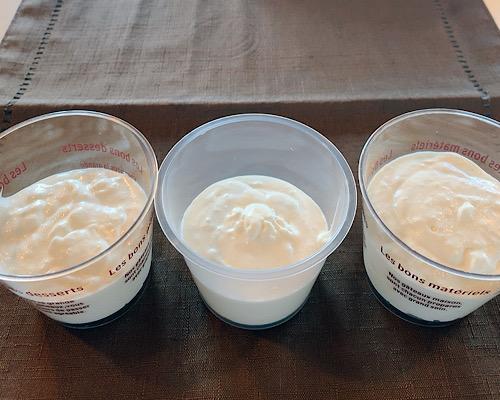 生地をカップに分けて入れて、冷蔵庫で固まるまで冷やしたら完成となる。