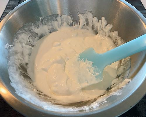 ヨーグルトを加えて、しっかりと混ぜ合わせる。